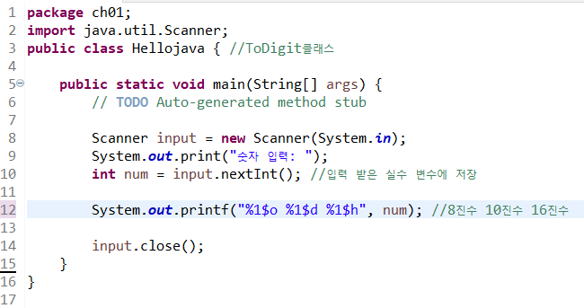 9. 정수 하나를 입력 받아 printf()를 사용해 8진수, 10진수, 16진수로 출력