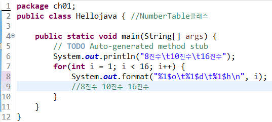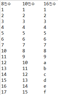 10. 정수 1부터 15까지의 수를 상수로 표현해 각각 8진수, 10진수, 16진수로 출력