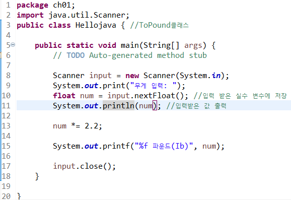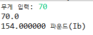 8. 무게(kg)를 실수 1개로 입력 받아 입력받은 값을 파운드(Ib)단위로 출력