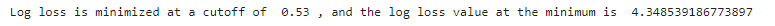 'Log loss is minimized at a cutoff of ', cutoffs[np.argmin(log_loss)],