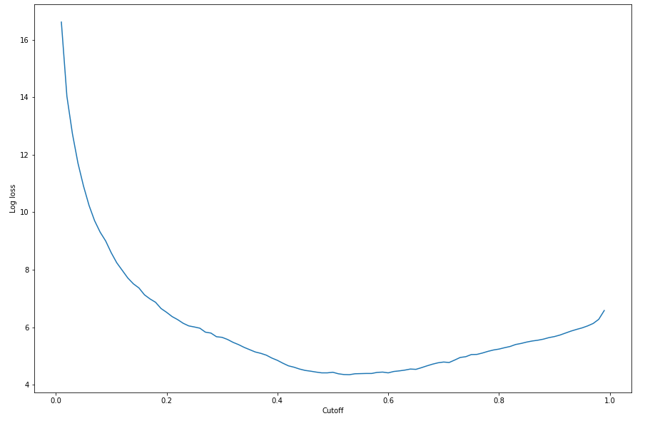 'Log loss is minimized at a cutoff of ', cutoffs[np.argmin(log_loss)],