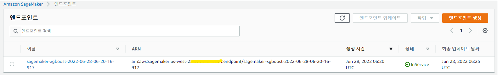 Amazon SageMaker 콘솔을 열어서 추론-엔트포인트 선택