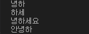슬라이싱 시 마지막 숫자를 포함하지 않는다. 그래서 38번째 줄 [2:4]를 보면, "하세요"가 아니라 "하세"인 것이다. 왜냐면 4번째 글자(0부터 시작)인 "요"는 포함되지 않기 때문이다.