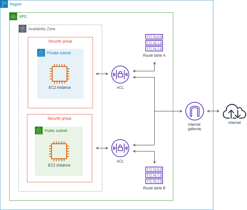 | 범위 | 인스턴스 수준 | 서브넷 수준 |