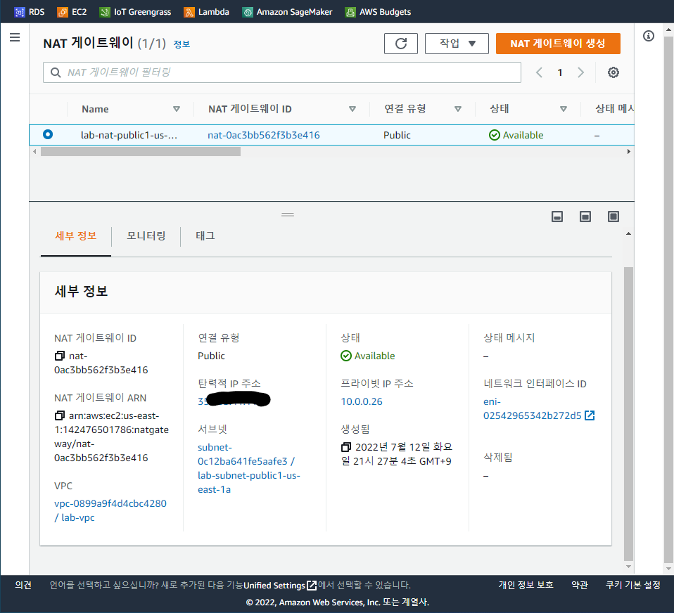 NAT 게이트웨이도 잘 생성되었음을 볼 수 있다