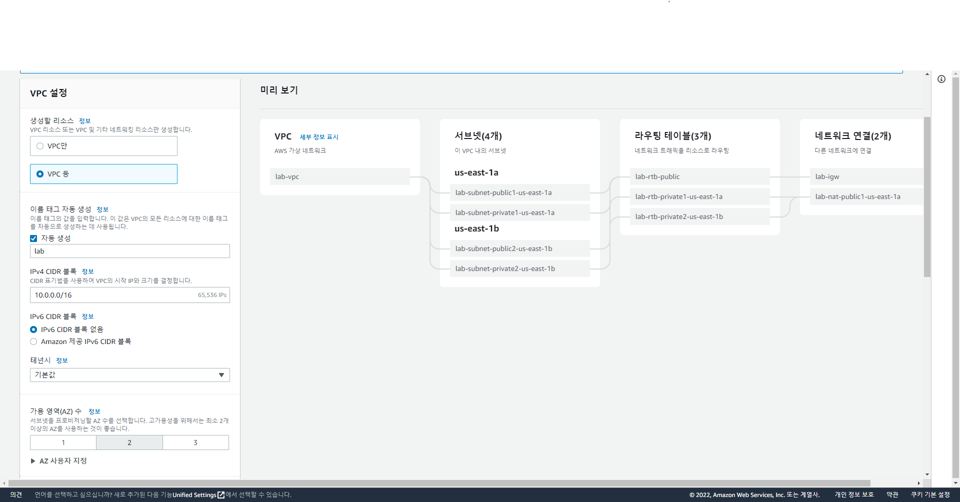 가용 영역은 원하는 대로 설정하면 되는데 나는 2개로,