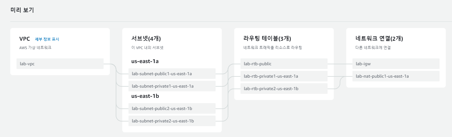 요새는 미리보기가 생겨서 저렇게 VPC에 어떤 서브넷과 라우팅테이블이 연결되어있는지 볼 수 있다고...(편리)