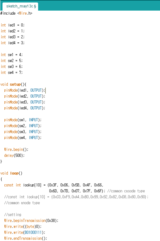 - 스위치 4번을 누르면 4번 LED만 ON이 되고 나머지는 Off, 4번 7-segment에 4로 표시