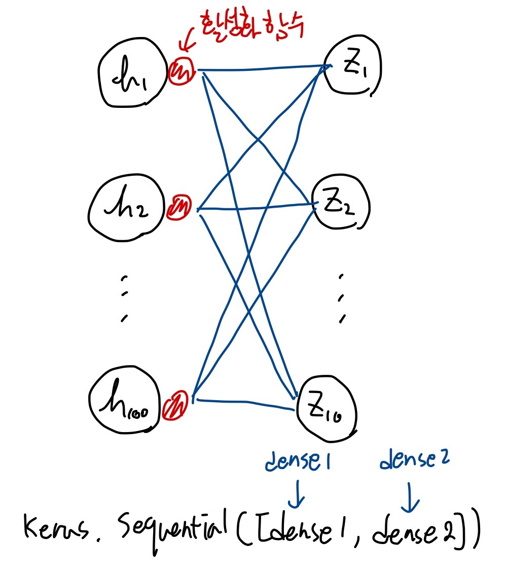 dense1 = keras.layers.Dense(100, activation='sigmoid', input_shape=(784,)) #은닉층