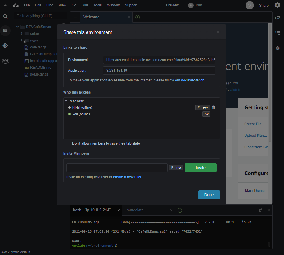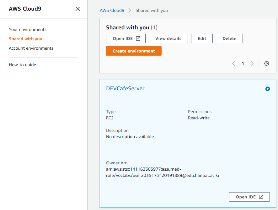 3. DEVCafeServer 라는 cloud9을 눌러 IDE 오픈하기