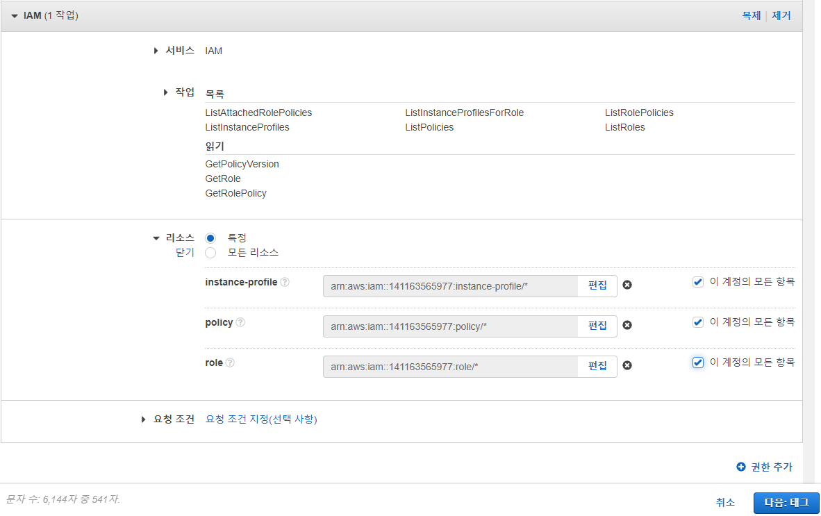 LimitedIamPolicy는 붙이고, IAMReadOnlyAccess는 제거