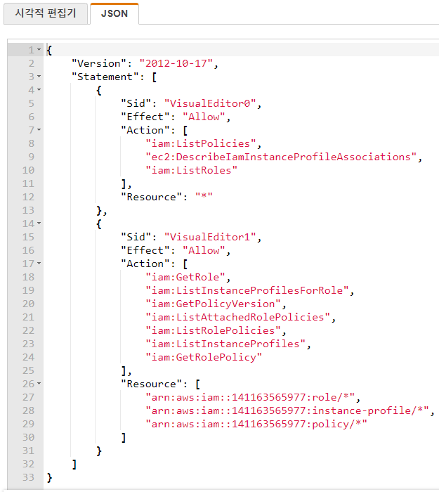 여기의 랩에서는 정책 생성을 하는 권한이 주어지지 않았다 하지만, visual editor를 통해 정책을 생성하고, JSON 정책 파일을 처음부터(from scratch) 작성하지 않고도 세분화된 정책을 만드는 방식을 배운 것이다...
