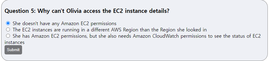 22. Q5 : 왜 Olivia는 EC2 인스턴스에 접근하지 못하는가?