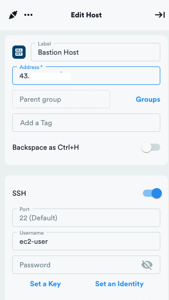 오른쪽에 열리는 메뉴바에 접근하고 싶은 서버의 정보를 넣으면 된다.