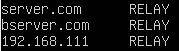 server.com, bserver.com 도메인의 릴레이를 허용하고, 192.168.111.OOO 컴퓨터의 릴레이를 허용한다는 의미이다.