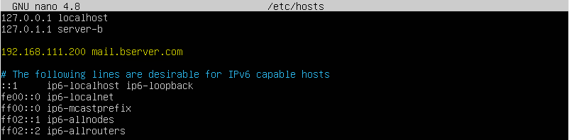 이번에는 Server B에서 bserver.com 메일 서버를 구축한다. Server에서 server.com 메일 서버를 구축한 것과 동일한 방법으로 하면 된다.
