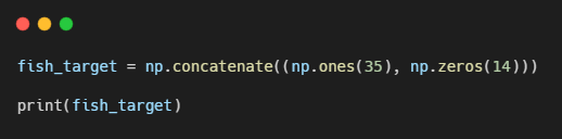 앞선 챕터와 같이 도미와 빙어의 데이터를 합쳐서 하나의 리스트로 준비한다.