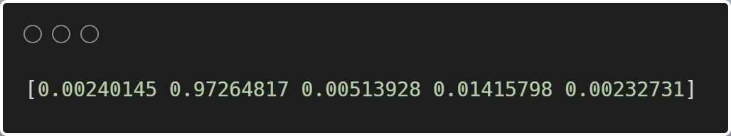 첫 번째 샘플은 세 번째 열의 확률이 가장 높은데 84.1%나 된다.