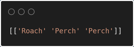 타깃 데이터를 만들기 위해 위와 동일한 방법으로 Species열을 선택하여 넘파이 배열로 바꾸고 이를 fish_target에 저장했다.