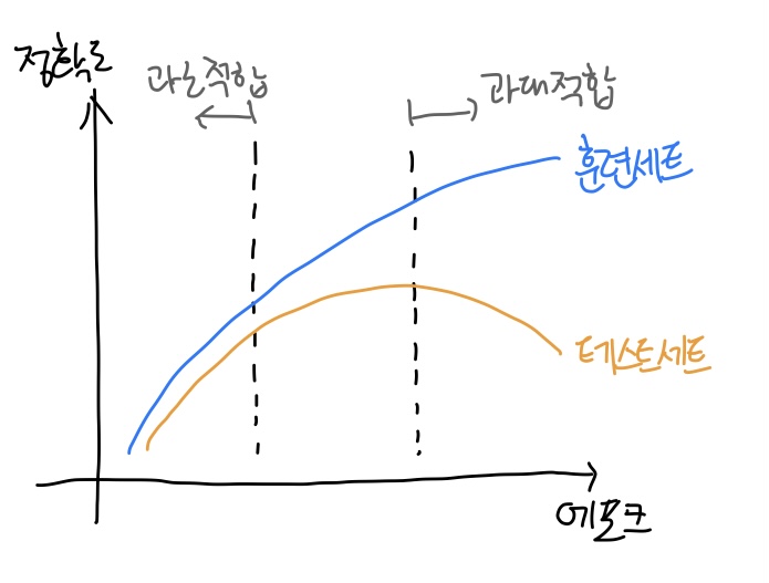 이 지점이 과대적합 되기 시작하는 곳이다.