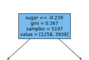 당도(sugar)가 -0.239보다 작은지 알아본다. 샘플의 당도가 -0.239보다 같거나 작으면 왼쪽 가지로 가고 그렇지 않으면 오른쪽 가지로 이동한다.