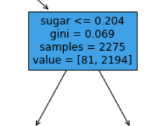 -> 당도가 -0.802보다 크고 -0.239보다 작은 와인들 중에 도수가 0.454와 같거나 작은 것이 레드와인이다.