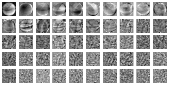 draw_fruits(pca.components_.reshape(-1, 100, 100))