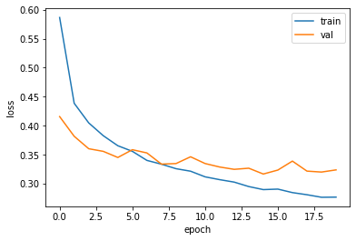 훈련세트의 손실은 에포크가 증가함에 따라 감소하지만, 검증세트는 초반에는 좋아진 듯 보이나 후반에 갈수록 손실값이 커짐을 볼 수 있다.