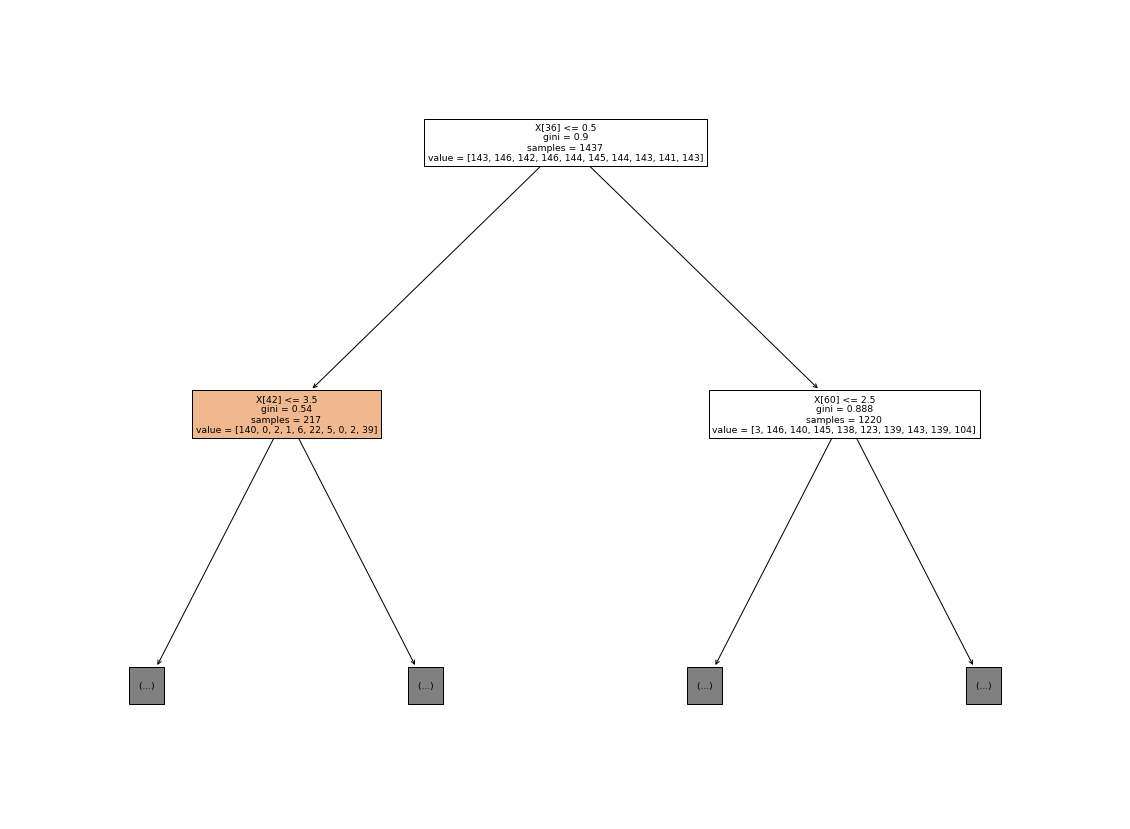 plot_tree(dt_classifier, max_depth=1, filled=True)